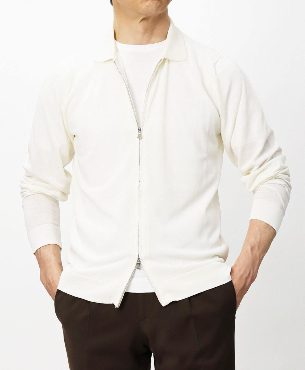 クレープコットン / crepe cotton / シャツ襟 ZIP UP ニット /