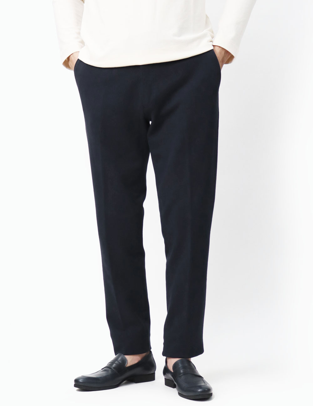 素材がジャージーなだけで見た目はドレスパンツという印象だと思います