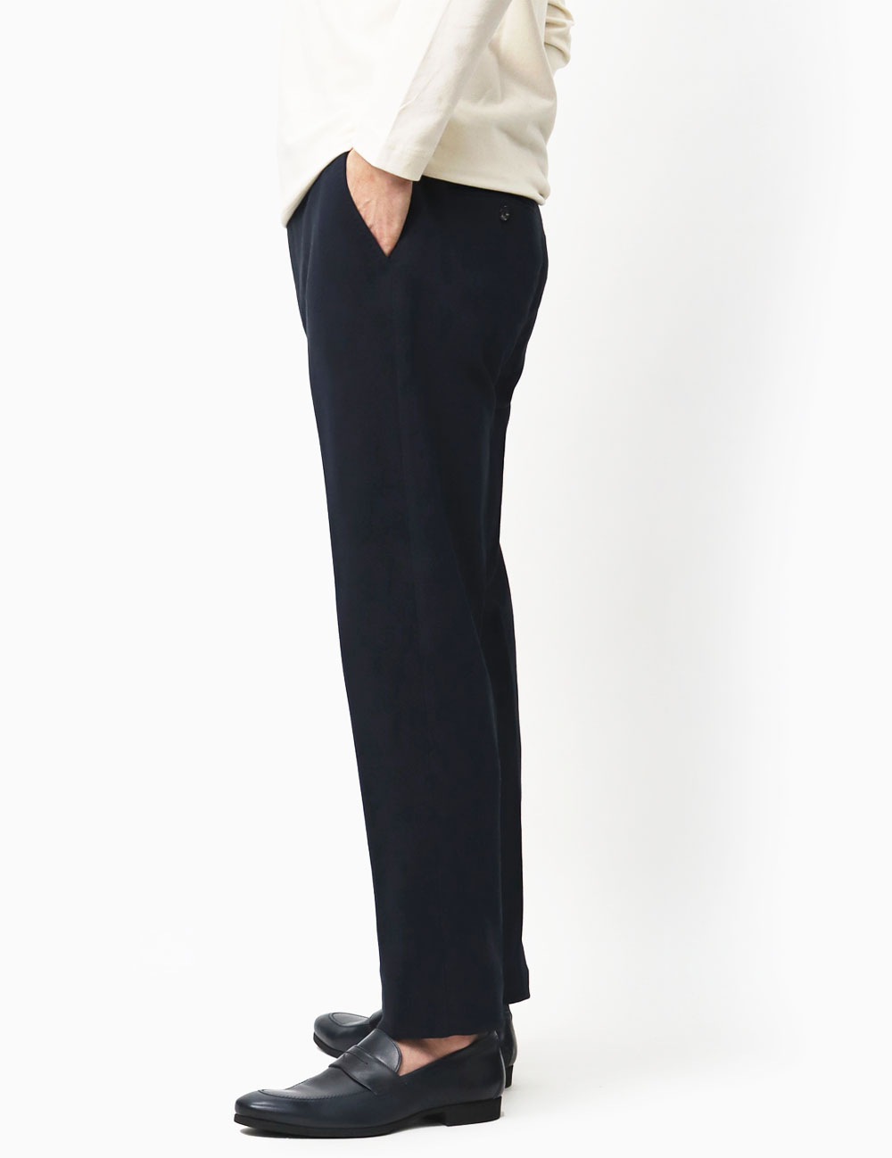 至ってシンプルなノープリーツのスラックス型です