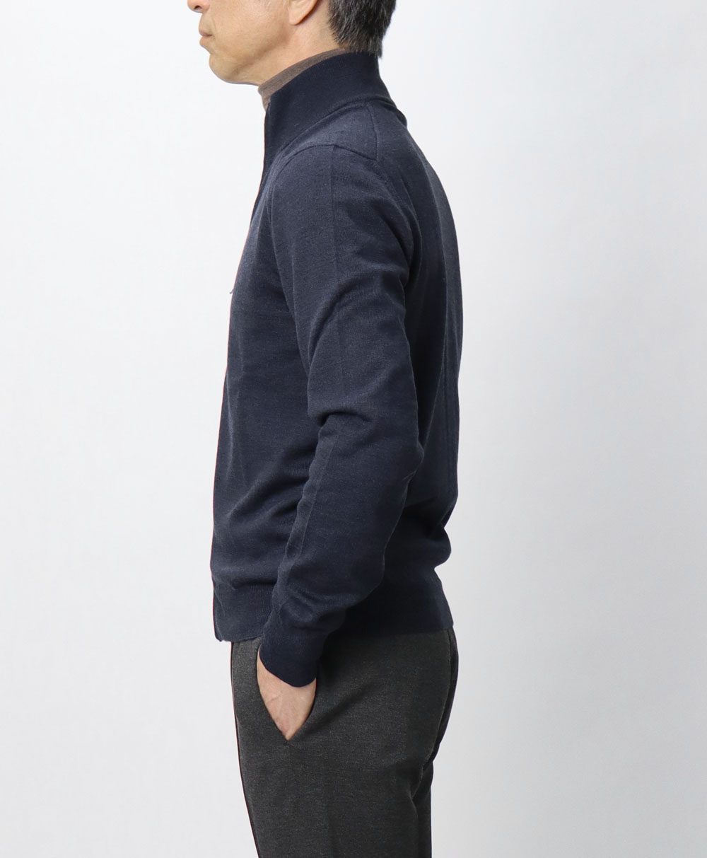 ダブル ZIP スタンドカラー ニット ブルゾン / 12G メリノウール /