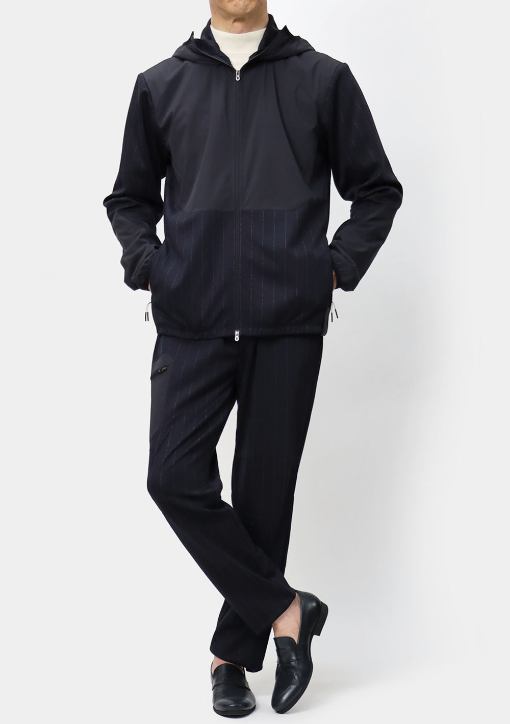 ストライプウールジャージー / 異素材切り替えハイブリッド /